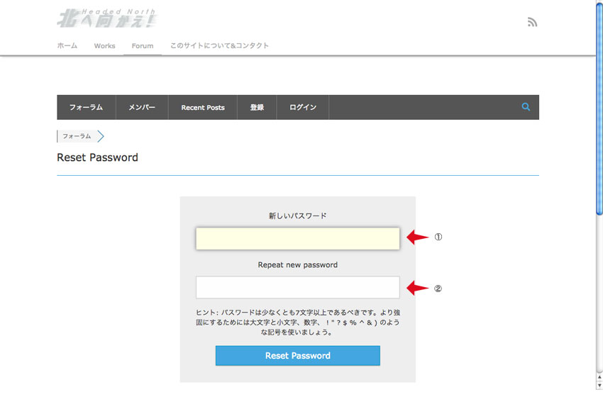 下の「Reset Password」をポチると登録が完了します。フォーラムのトップ画面に自動で戻ります。